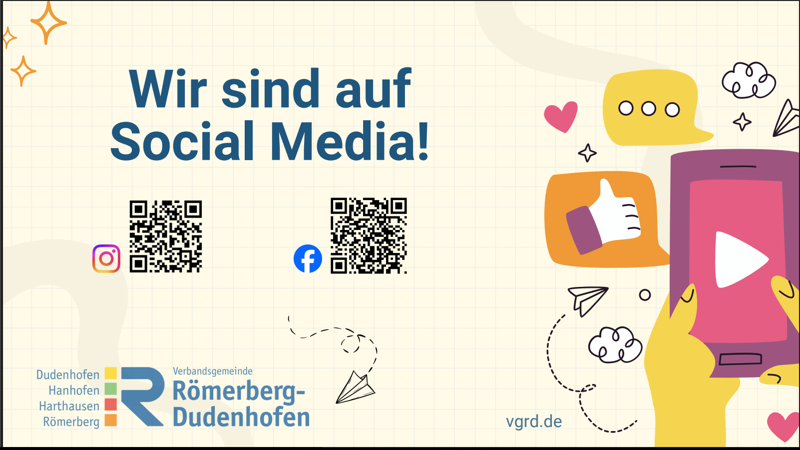 07.10.2025 Wir sind auf Social Media!07.10.2025Besucht uns auf Facebook und Instagram. Hier gibt´s News & Stories aus Dudenhofen, Hanhofen, …Mehr lesen
